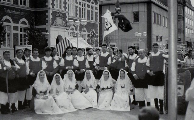 Il primo regalo per i quarant’anni di vita de su “Sotziu de ballu ovoddessu Orohòle” se lo sono fatti loro. Si tratta di un calendario, o per meglio dire, il calendario. Si perché tra le tante iniziative che promuovono, da 17 anni stampano un calendario tematico, che, come dicono loro stessi “appassiona e coinvolge l’intero paese” perché trattano con foto e poesie un argomento della vita quotidiana. Quest’anno non potevano che parlare della propria storia. Da sempre “la passione per la musica, i balli e il divertimento hanno caratterizzato la vita degli ovoddesi” scrivono nel calendario. Ogni avvenimento era per loro occasione “per far festa ballando e cantando a cuncordu” come testimoniato anche le foto. Una dei primi del novecento li ritrae mentre ballano e cantano per l’arrivo in paese di due filiciptos (ciclisti), come li chiamò una signora. Ma si spostavano anche in altri paesi dell’isola. Negli anni quaranta andarono a Cagliari per ballare in onore del re Vittorio Emanule III e la regina Elena. Erano questi dei gruppi estemporanei, non organizzati. Anche se negli anni conseguirono dei premi: come ad una festa ad Ozieri nel ’52, dove si aggiudicarono il primo posto ad una gara di ballo. “Questo spirito e passione per la danza avevano spinto alcuni giovani a costituire nei primi anni settanta, un gruppo folk organizzato”, ricordano oggi i componenti del gruppo presieduto da Pietro Puddu. L’anno successivo ottennero subito un risultato di prestigio: “Vinsero il primo premio alla sagra del Redentore a Nuoro dove ballarono per la prima volta accompagnati dall’organetto di Peppino Deiana e le bidulas di Peppe Cuga”. Questo diede ai giovani del gruppo, chiamato Orohòle come il monte che sovrasta il paese, entusiasmo e forza per andare avanti. Si esibirono in diversi paesi dell’isola ma anche all’estero, “prima fra tutte quella all’Eurofestival del folklore di Langollen in Galles nel ’76, dove il gruppo si classifico terzo mentre Pepe Cuga (unico suonatore di bidulas per la provincia di Nuoro) vinse il primo premio. In quarant’anni di vita hanno fatto parte del gruppo tantissimi ovoddesi, diverse generazioni, l’unico sempre presente dalla fondazione ad oggi è Fabio Lai, noto Tobia, che cominciò a ballare per Orohòle da quando aveva 15 anni. Negli anni si è affermato anche “un vero e proprio vivaio di piccoli balladores”. Oggi il gruppo è composto da circa 70 persone, tra grandi e piccoli. Negli anni sono cambiati anche i suonatori di organetto. “Su Sotziu de ballu – dice Piero Mattu, per tutti su Re – oltre a fare il calendario, partecipa ogni anno a diverse manifestazioni in Sardegna, Italia e all’estero, promuove convegni, feste e iniziative sulle tradizioni culturali. A Cortes apertas curiamo una mostra sul costume ovoddese e in generale siamo attivi nella ricerca e mantenimento della tradizione che cerchiamo di trasmettere ai più giovani. Quest’anno cercheremo di organizzare qualcosa di speciale per il paese per festeggiare assieme i nostri 40 anni”.