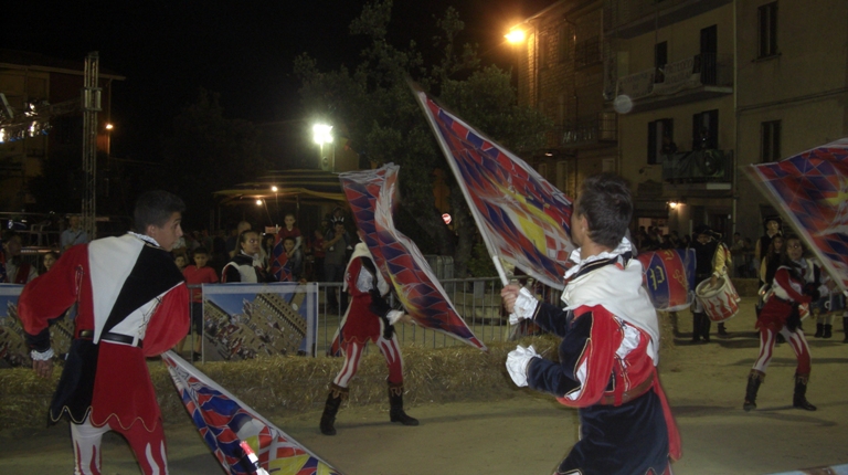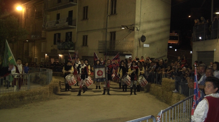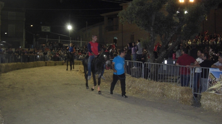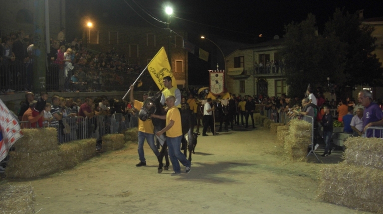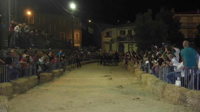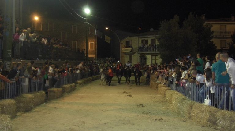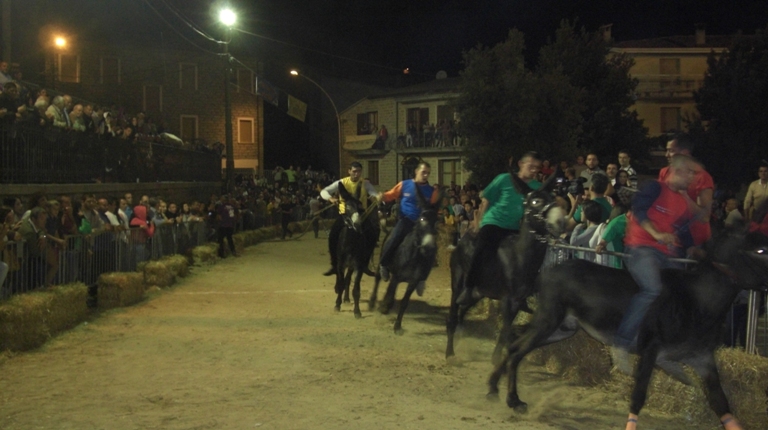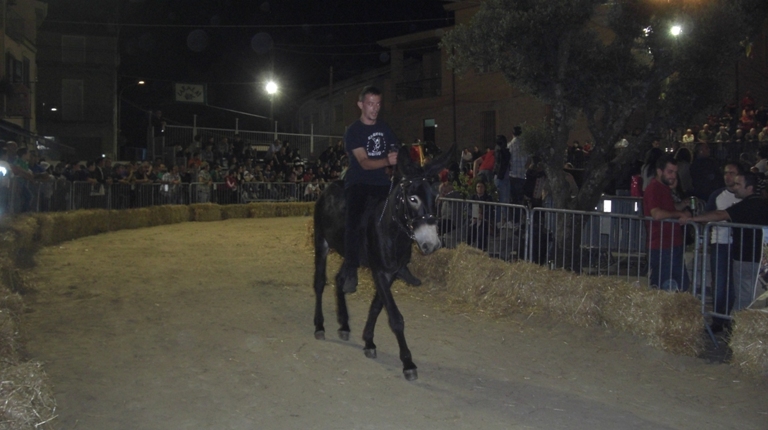 OLLOLAI. E’ di Dollaro il dodicesimo palio degli asinelli. Mentre Matteo Bussu consegna quello riservato a sos vihinados a Sa Palude. Una piazza gremita ha assistito poche ore fa a uno degli spettacoli più singolari dell’estate: il palio in notturna, corsa riservata agli asinelli. Dopo la spettacolare introduzione del corteo medievale con gli sbandieratori, ecco sfilare lungo la pista di sabbia il giogo con il carro che trasportava su palu, lo stendardo che da un anno alloggiava nel vicinato vincitore dell’edizione 2012 della gara de sos vihinados: Su Montricu. Ad allietare la serata il comico cantautore Nicola Cancedda, autore dell’Inno del Palio barbaricino, mentre un attentissimo Tore Budroni ha raccontato al numeroso pubblico la cronaca del palio. Quattro le batterie durante le quali un asino e il suo fantino sono caduti in modo carambolesco all’approssimarsi di una partenza. Ordinaria amministrazione durante la manifestazioni; e nemmeno i due minuti di leggera pioggia hanno disturbato lo svolgersi della manifestazione, anzi, hanno rinfrescato l’aria in una tiepida (e quantomeno inusuale visti i mille metri di altitudine) serata di luglio. Si aggiudica il primo posto, come detto, l’asino Dollaro montato dal fantino Antonello Pisano. Diversa la concitazione invece per su palu de sos vihinados dove alla competizione dei quadrupedi si è aggiunta quella delle tifoserie. La sfida tra i cinque rappresentanti dei rioni locali ha visto aggiudicarsi su palu a Sa Padule. “S’astore” celeste- arancione ha strappato alla capretta de su Montriccu il titolo, confermandosi il vicinato con più menzioni in albo d’oro dove: è la quinta vittoria su dieci campionati. La festa, si sposta ora dalla piazza centrale nei 5 punti di ritrovo dei rioni, dove proseguirà inevitabilmente fino a domani mattina.
