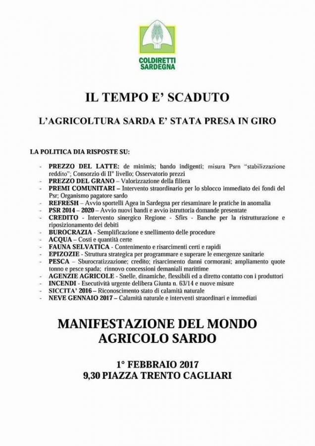 Sono arrivati numerosi, oltre 4 mila, da tutta la Sardegna e ora marciano verso il Consiglio Regionale. Sono gli agricoltori e pastori, ma anche pescatori della Sardegna che alzano la voce contro le istituzioni regionali, colpevoli di non aver supportato il maggior settore economico sardo con la giusta programmazione, perchè molte e diverse sono le problematiche irrisolte. In particolare si rimprovera alla politica l'assenza di azioni di tutela atte a scongiurare il crollo del prezzo del latte.