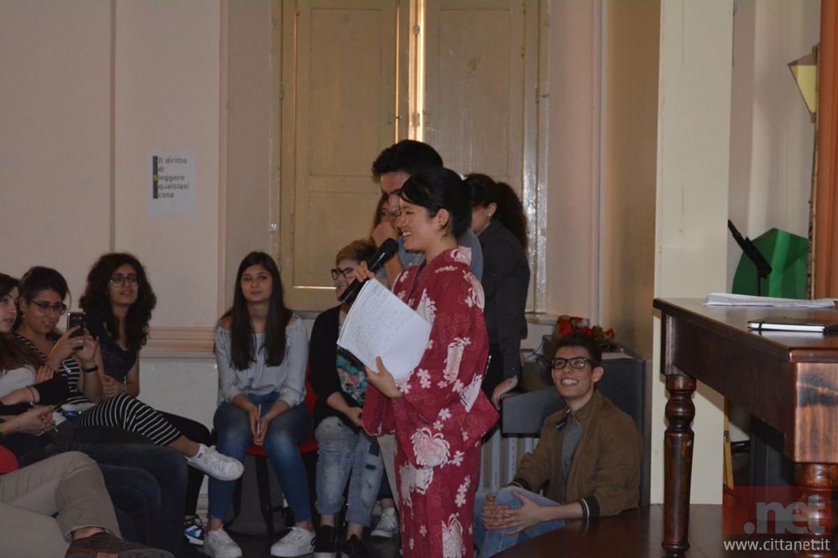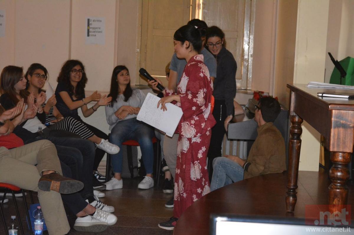 Le classi seconde e terze, coordinate dalle docenti Lina Barone e Maria Antonietta Mulargiu,hanno raccontato i loro viaggi in giro per il mondo grazie al programma Intercultura. Trascinate dall'entusiasmo di Nicolas De La Jara e con la sapiente regia di Cristina Mereu, le classi presenti hanno visitato il Giappone facendo tappa in Russia, Stati Uniti, Svezia, Brasile, Romania, Israele, Norvegia, Marocco, Colombia, Irlanda e Cina.