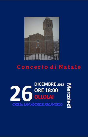 Anche quest’anno si rinnova l’appuntamento natalizio con la musica. Il concerto organizzato in occasione del Natale è un momento graditissimo dagli ollolaesi che non mancano di parteciparvi numerosi. Teatro abituale la Chiesa di San Michele Arcangelo, luogo centrale del paese che pur disponendo di grandi spazi, negli anni passati a malapena ha contenuto il folto pubblico. Anche quest’anno programma ricchissimo e tutto all’insegna della tradizione. Il coro s’Ispera organizzatore dell’evento, presieduto da Tore Cottu e diretto da Vincenzo Visconti, con il patrocinio del Comune di Ollolai, ospiterà il coro “Calarighes” di Bolotana (diretto da Riccardo Marongiu), il coro “S’Urbale” di Teti (diretto da Costantino Mirai), e il coro Palmerese di Palmas Arborea (diretto anche questo da Costantino Mirai). I canti in programma saranno principalmente della tradizione sarda e quindi in dialetto, ma non mancheranno anche canti in italiano e in inglese.