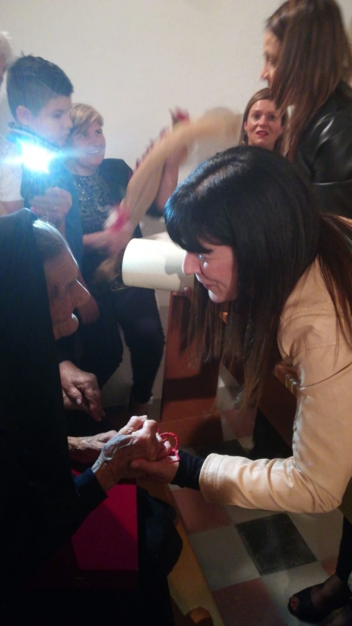 La donna, visibilmente emozionata ha ricevuto l'omaggio dei bambini delle scuole olzaesi, presenti alla cerimonia. Ha anche intonato l'Ave Maria, e una volta finita la messa ha ricevuto gli auguri di tutti.