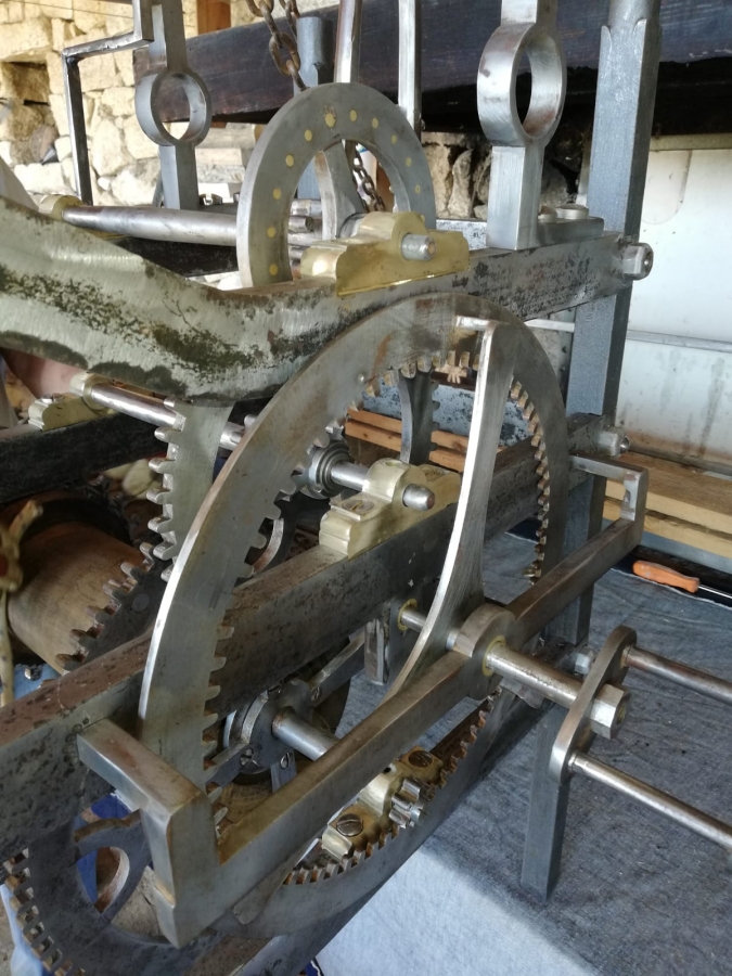 Portato a termine il montaggio, si è reso necessario uno studio approfondito per poter comprendere il corretto funzionamento dell'opera ingegneristica, basata su principi di alta precisione necessari ad eseguire la taratura con minuziosa scrupolosità , che ha visto i due impegnati per oltre un anno. I lavori hanno compreso oltre lo smontaggio e il montaggio degli elementi, anche la pulitura dalla ruggine di ogni singola vite e bullone.