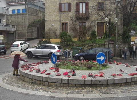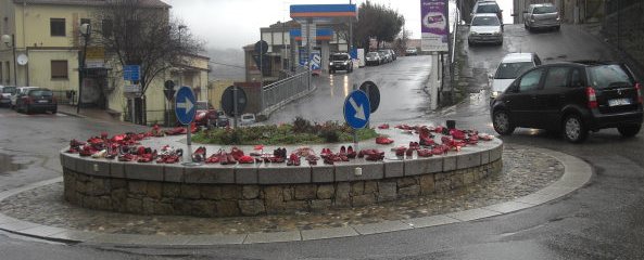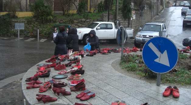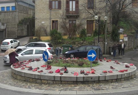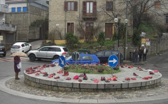 Gavoi. Le prime scarpe rosse sono state lasciate nella rotonda di sa serra alle 6,45. L’iniziativa delle donne di Gavoi è cominciata anche prima del programma. Una giovane studente ha voluto partecipare e dare il suo contributo prima di salire sul pullman che la portava a scuola a Nuoro. Da lì è cominciata la processione ininterrotta. Tutto il paese, e non solo (stanno partecipando anche le donne dei paesi vicini), sta portando scarpe, qualcuna fiori e qualche altra anche dei biglietti. Per non dimenticare, per ribellarsi a chi le vuole succubi, di proprietà . Di seguito le prime foto della iniziativa silenziosa, ma fino ad ora molto rumorosa. Parlano i fatti, come da tradizione donna.