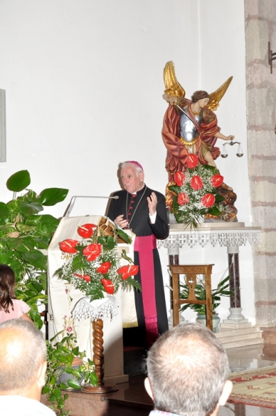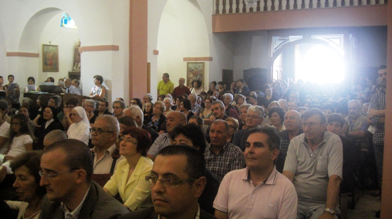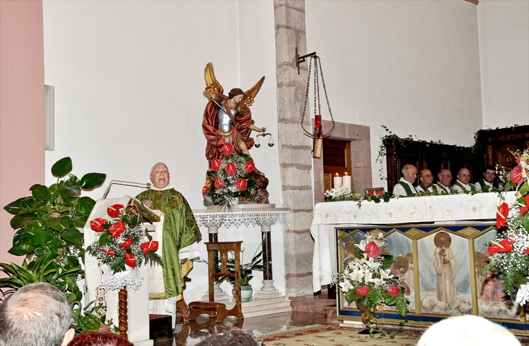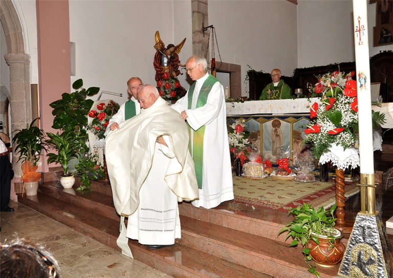 OLLOLAI. Una festa. Una grande festa per un grande parroco. Ieri pomeriggio la Chiesa di San Michele Arcangelo era stracolma per i 50 anni di sacerdozio di don Filippo Fancello, bis della festa celebrata a Dorgali, sua città natale, che anche lì aveva registrato “il tutto esaurito”. In Chiesa c'erano persone accorse da tutte le parrocchie in cui don Filippo è stato in questi 50 anni: Bitti, Orgosolo, Oliena, Gavoi, Torpè, naturalmente Dorgali e tutta Ollolai. Una dimostrazione di affetto, un riconoscimento per una persona umile, modesta e semplice, sempre disponibile con tutti. Come ha sottolineato lo stesso festeggiato: “la porta qui è sempre aperta, a tutte le ore, senza campanelli”.
