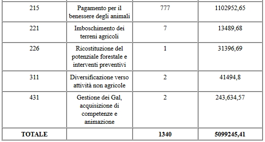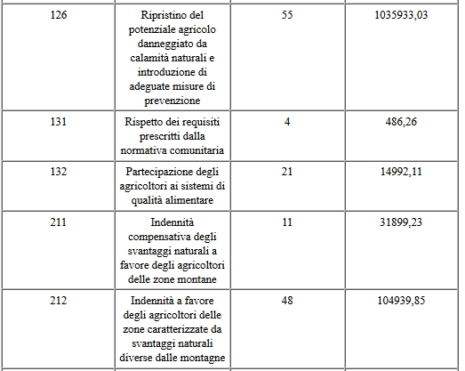 Oltre due milioni di euro con questo nuovo decreto sono destinati anche alle misure 126, ripristino del potenziale agricolo danneggiato da calamità naturali e introduzione di adeguate misure di prevenzione; e 215 benessere degli animali.