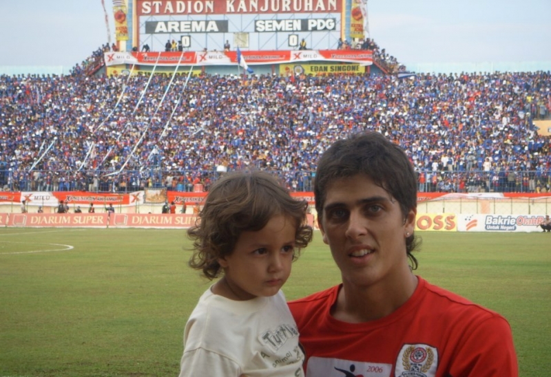 Gavoi. “Quando smetto di giocare voglio restare nel mondo del calcio”. Matias Canessini ha già le idee chiare per il suo futuro. Vuole continuare a coltivare la passione della sua vita. Ed, infatti, oltre ad essere uno dei protagonisti della positiva stagione del Taloro, sta già studiando da allenatore. Dallo scorso dicembre è l’allenatore dei pulcini. “Lo ero già stato per 4 anni a Ittiri, quando vivevo lì”. Argentino di Cordoba (“la seconda città dell’Argentina con 1 milione e 300 mila abitanti”) Matias, 30 anni, ha lasciato la sua patria quando ne aveva 21. “Ho giocato 3 anni nella serie A dell’Indonesia” (nella foto sotto), poi dopo un breve ritorno nel paese natale (6 mesi per un infortunio) “ho preparato i documenti per la cittadinanza italiana e sono arrivato in Sardegna: mio nonno era di un paese vicino ad Udine”.