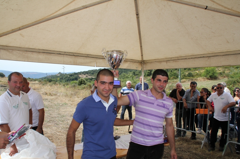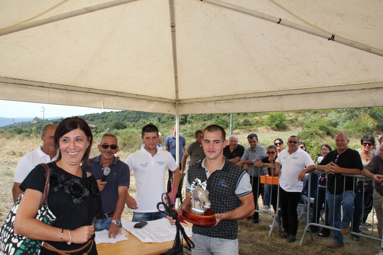 OLLOLAI. Matteo Bussu si riprende il titolo di Uomo Cavallo. Il giovane cavaliere di Ollolai, dopo aver vinto la prima edizione porta a casa anche la terza. Un’estate da protagonista per lui che ha trionfato anche ai pali degli asinelli di Ollolai (quello de sos Vihinados) e di Macomer. Questa mattina, con un tempo bassissimo, Matteo ha superato la concorrenza e si è portato a casa mille euro. In sella a Sae Boiai, ha completato il percorso di 5 km in soli 10 minuti e 28 secondi. 41’’ in meno rispetto al record dello scorso anno, addirittura meglio di 1’52’’ rispetto a quello stabilito dallo stesso nel 2011. Al secondo posto Antonio Columbu di Ollolai con Cantaride. Al campione in carica non è bastato migliorare il proprio tempo di 30’’ (10’39’’ quest’anno, 11’09’’ lo scorso anno). A lui sono andati 500 euro; terzo Daniele Arca di Silanus in sella a Happy days (11’19’’) che ha vinto 300 euro; quarto posto per l’ollolaese Matteo Ladu: 11’45’’ il suo tempo, 200 euro vinti. Premi sono andati anche a tanti altri partecipanti. Tra gli altri al concorrente più anziano Edoardo Stara di San Vero Milis ed al più giovane, Luca Cottu di Ardara. Soddifati gli organizzatori, l’associazione Uomo Cavallo guidata da Antonio Ladu, che dell’iniziativa è anche l’inventore.