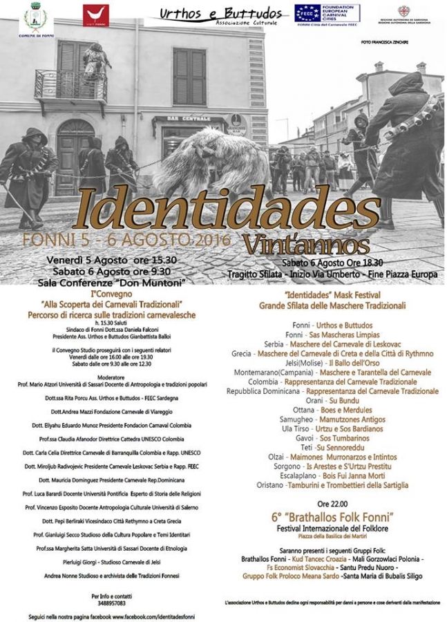 L’evento è stato chiamato Identidades e ha preso forma grazie alla volontà del gruppo Urthos e Buttudos, un’associazione che valorizza la tradizione del carnevale fonnese e che in questi anni è stata protagonista nelle principali sfilate dei carnevali tradizionali di tutta Europa. Eventi organizzati dalla Federation of European Carnival Cities, che in Sardegna ha come referente la professoressa Rita Porcu che ha lavorato in questi anni per portare numerosi gruppi sardi fuori dalla Sardegna. “Lo scopo di Identidades – continuano gli organizzatori - è incentrato sulla conoscenza e allo studio sul mondo delle tradizioni carnevalesche mondiali, con relatori antropologi, studiosi e membri di associazioni a livello internazionale che partecipano attivamente alla promozione e alla valorizzazione del tradizioni carnevalesche nel mondo”.