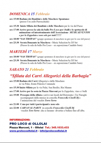 OLLOLAI – SABATO 21 FEBBRAIO ORE 15