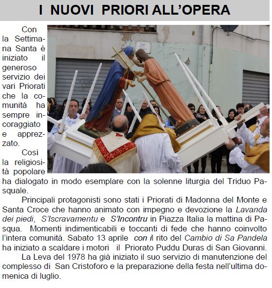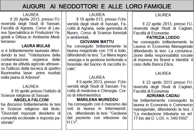 Il Meloni era nativo di Olzai ma da parecchì anni domiciliato in Fonni, Ricco dì censo e di preclari virtù, da tutti stimato per le sue gentili ed affabili maniere, lascla grato ricordo di sé fra questa popolazione, nel lutto la desolata consorte donna Marìa Meloni, il fratello, il cognato nob, Giovanni Meloni, nostro ufficiale postale, ed il nipote, nostro egregio medico condotto dottor Gioachino Marchi Meloni. Oggi ebbero luogo i funebri. Vi presero parte le persone più no-tevolì del paese, e largo stuolo di parenti ed amici del defunto. Alla sconsolata consorte ed ai parenti sentite condoglianze. — Dopo alcuni giorni di fitta pioggia, il tempo si è rimesso, il sole splende in tutta la sua magnificenza, ed i laboriosi contadinI accudiscono ai lavori per la semina del grano e dell’orzo. A causa delle pioggie dei passati giorni, dei maiali che a centinaia vi transitano liberamente, le strade pubbliche sono diventate nere pozzanghere, assolutamente Impraticabili; poveri forestieri, per non inzaccherarsi fino ai capelli o rompersi l’osso del collo, oppure essere azzannati dai grossi mastini che come tanti cerberi ringhiano sul limitare delle porte, sono obbligati a rintanarsi in casa mezz’ora prima della notte. Con tenue spesa e con minima sorveglianza si potrebbero ovviare a questo sconcio; giro la raccomandazione ai nostri amministratori comunali ed anche all’ottimo nostro delegato di pubblica sicurezza.