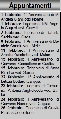 Giovanna Ant. Angheleddu ved. Balloi, il 19 gennaio, a 94 anni.
