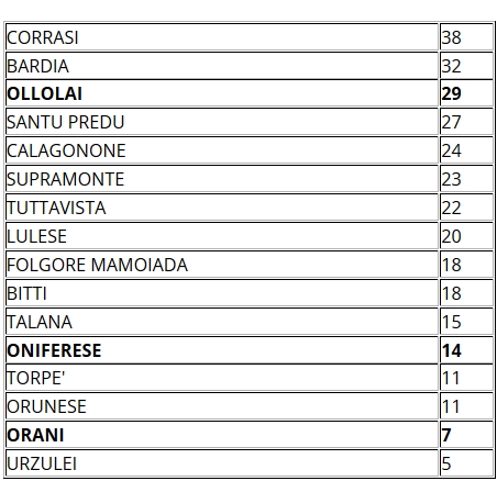 Giacché siamo in argomento sport, qualche nota sul calcio ollolaese; nonostante l’amaro in bocca ed il dolciastro panettone consumato a Natale motivato dalla esagerata sconfitta subita ad Oliena (3-0!), la compagine ollolaese in questa prima parte del campionato ha dato molte e sostanziose soddisfazioni ai propri fans, al mister di ferro Bandinu e al presidente Giuseppe Ghisu; ne è prova l’ultima classifica che qui sotto vi proponiamo: