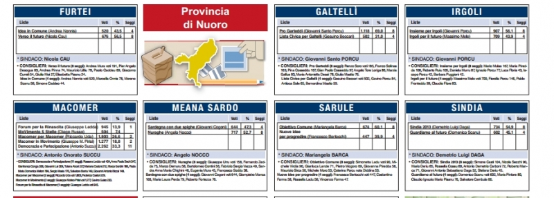 L'unione sarda. Risultati nei Comuni della provincia di Nuoro